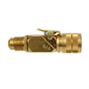 The Kwik-Coupler adapter set is intended for use with refrigeration and air-conditioning service hoses when connecting to core valve type access fittings. Conventional threaded connecting is converted to a push-pull operation which is faster, easier and positive sealing at all times. Valve cores are depressed automatically without adjustments or loss of refrigerant. Disconnecting is also accomplished without loss of refrigerant.